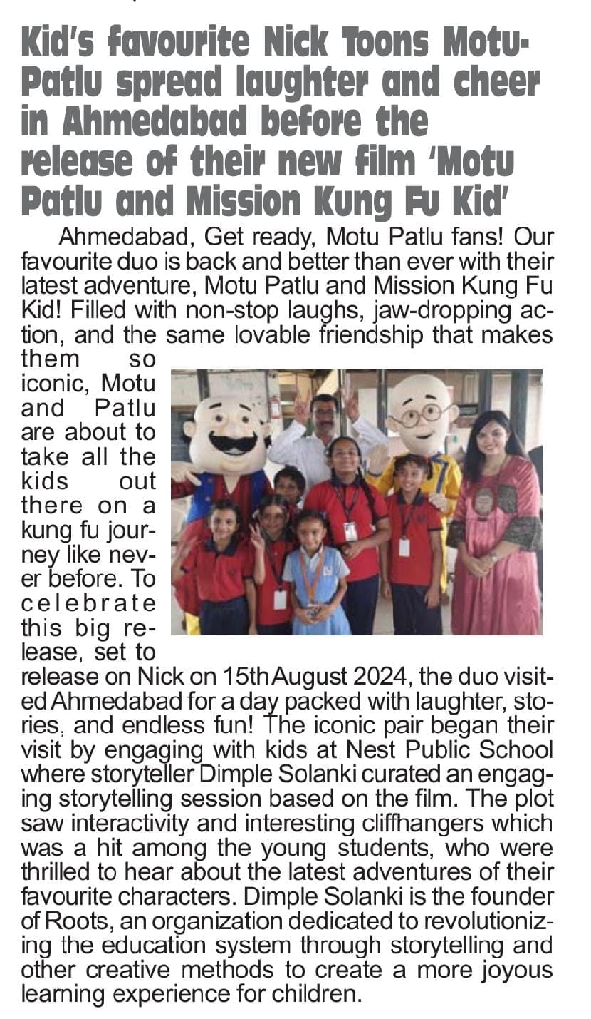 We were thrilled to welcome Motu Patlu to our school for a special promotional event celebrating their latest film. The beloved animated characters brought a burst of energy and excitement as they interacted with students and shared behind-the-scenes insights into their new movie. The visit included a lively session where Motu and Patlu engaged with the audience through fun activities, games, and a sneak peek of the film’s highlights. Their charismatic presence and the engaging presentation captivated students of all ages, sparking joy and enthusiasm throughout the school. This memorable event not only provided a unique opportunity to connect with our favorite characters but also fostered a deeper appreciation for the creative arts and entertainment industry.